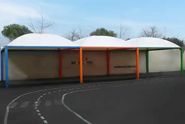 Que ce soit pour ombrager l’entrée d’un établissement scolaire ou pour créer un abri vélos, par exemple, les structures textiles s’adaptent à tous les espaces et tous les besoins.